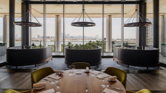 Perfectly suited to celebratory dinners and special occasions, Dinner by Heston Blumenthal feels sophisticated yet inviting and cozy with warm browns, polished black accents, elegant booths and a private dining room. Inside, chefs are at work in the show kitchen, while floor-to-ceiling windows offer views of Palm Jumeirah and the resort’s iconic Skyblaze fire and water fountain show.