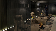 Spanish designer Patricia Urquiola helped create the ambience by using colors such as black and white, and mixing materials such as wood and malachite. The common areas are dark and atmospheric: the spa-only lap pool backlit with a deep green, the steam room with tiled loungers and the relaxation room’s tan spa beds invite you to sink deeper into relaxation.