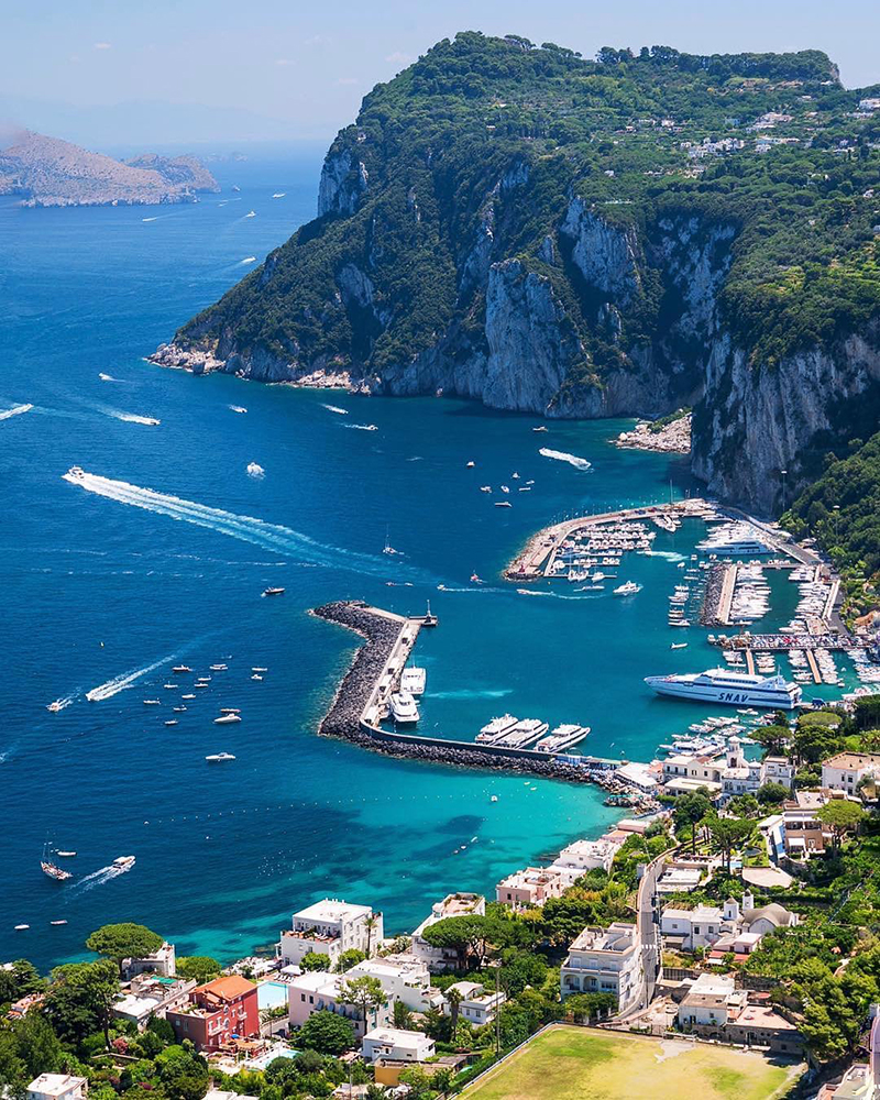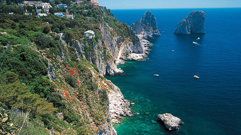 Easily accessible from Naples and Pompeii, the rocky isle of Capri is one of the most popular travel destinations on the Amalfi Coast. Though it is constantly filled with sightseers, don’t let the holiday-resort façade deter you — the island’s Italian charms override any souvenir-seeking groups that may be roaming the cobblestoned streets. The sun-drenched island is composed of two villages, Capri and Anacapri. Though Capri is the main attraction, Anacapri is home to the highest point and best vistas. Both villages are strewn with ancient alleyways that wind through majestic panoramas filled with the sea and citrus groves. The island of limestone rock is as much an ideal hub for visiting the rest of the Campania region, as it is a vacation in itself.
